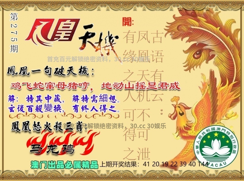 275期:九肖【猴马狗虎鼠龙猪蛇】开:鸡45准
